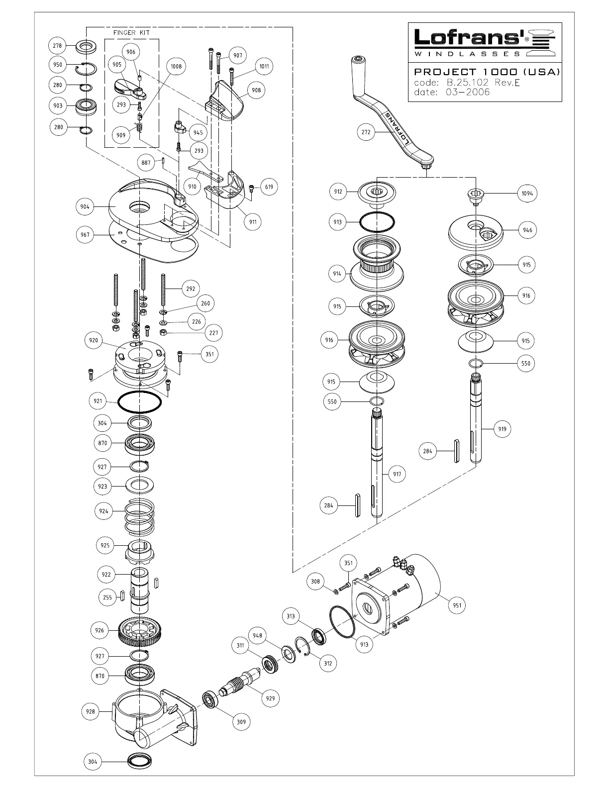 Lofrans PROJECT 1000 - Exploded View and Parts; Finger Kit Breakdown; Windlass Component Assembly