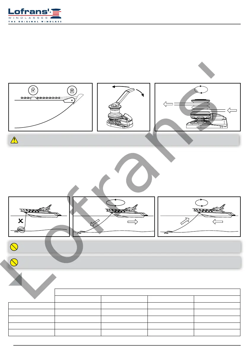 2. To ease the recovery and not overloading the capstan, steer up in a way that the boat slowly moves on the vertical of the anchor.