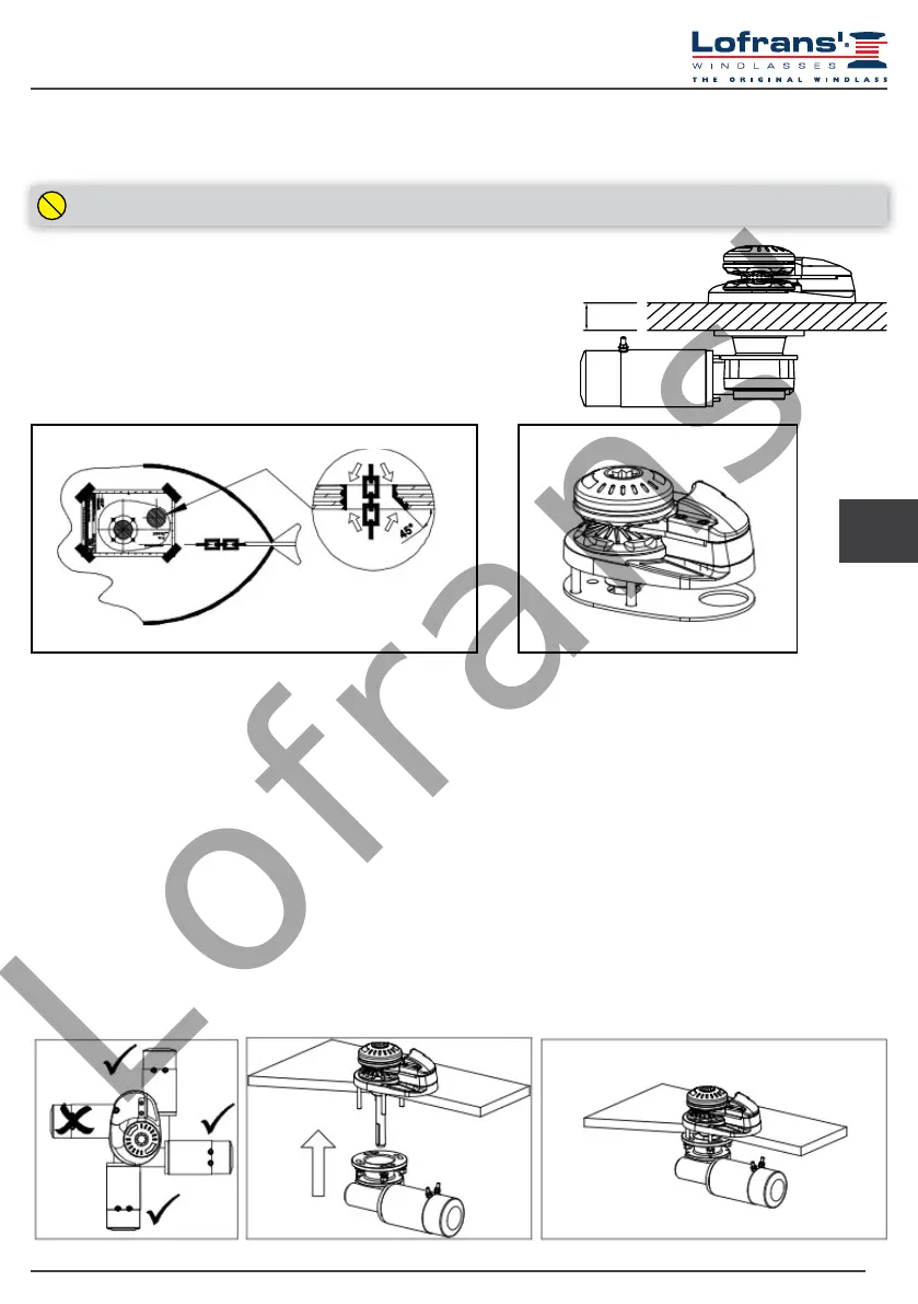 For aluminium boats, it is essential that the anchor windlass be insulated from the deck through a non-conductive gasket (not supplied).