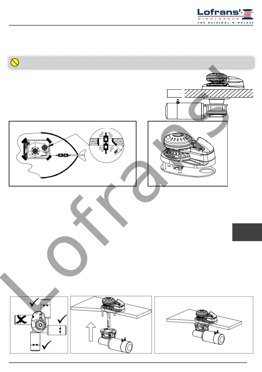 Para los barcos en aluminio es esencial que el molinete esté aislado del puente por medio de una junta no conductiva (no presente en