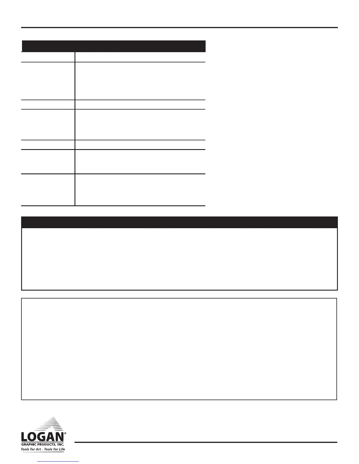 Logan Graphic Products, Inc. (“Logan”) warrants the model 650-1 / 655-1 / 660-1 FRAMER’S EDGE ELITE to be free from defects in parts
