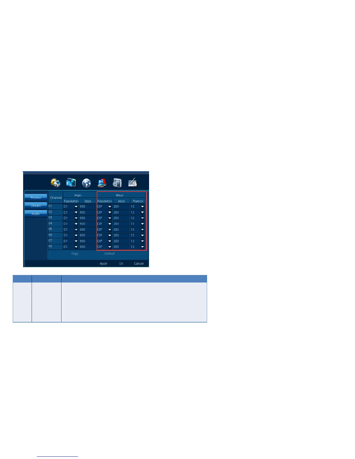 Function introductionMinor stream stream for network transmissionresolution choice No/QCIF/CIFkbps can be adjustedfluency choice High/Middle/low