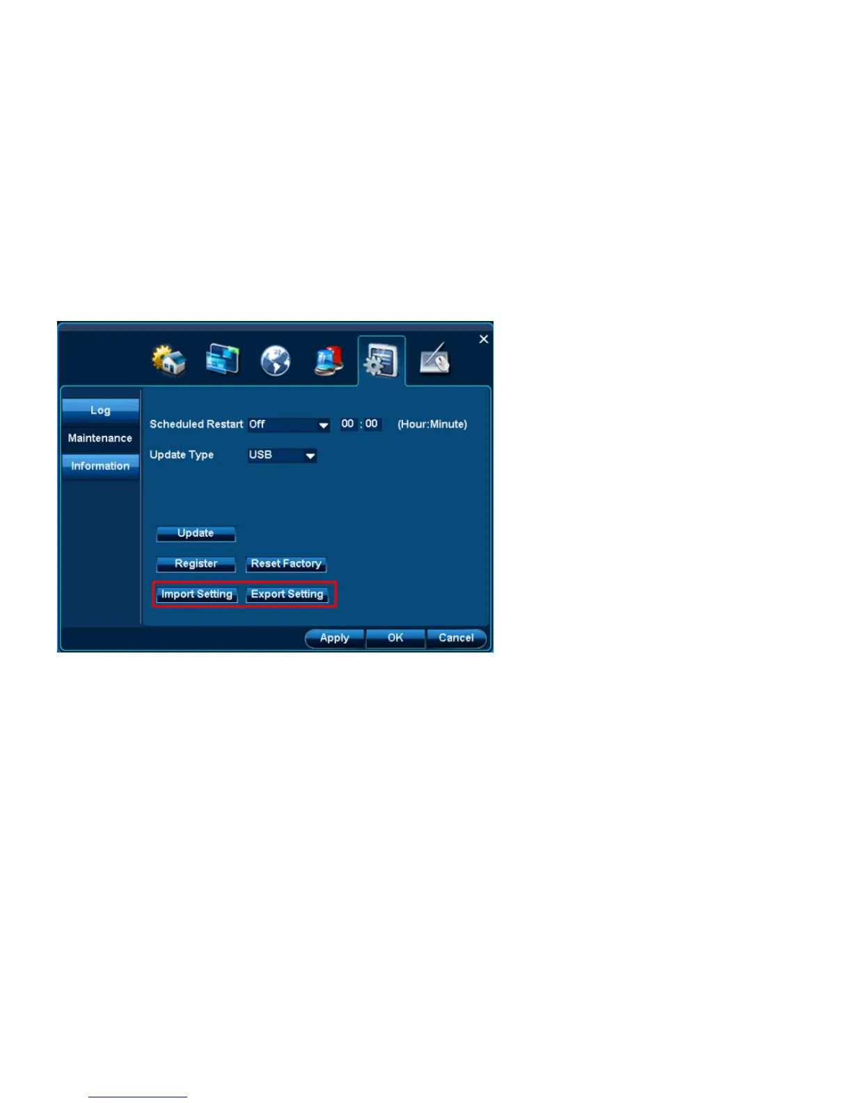 2. Click” Import setting” button to import the setting from U-Disk to this DVR.