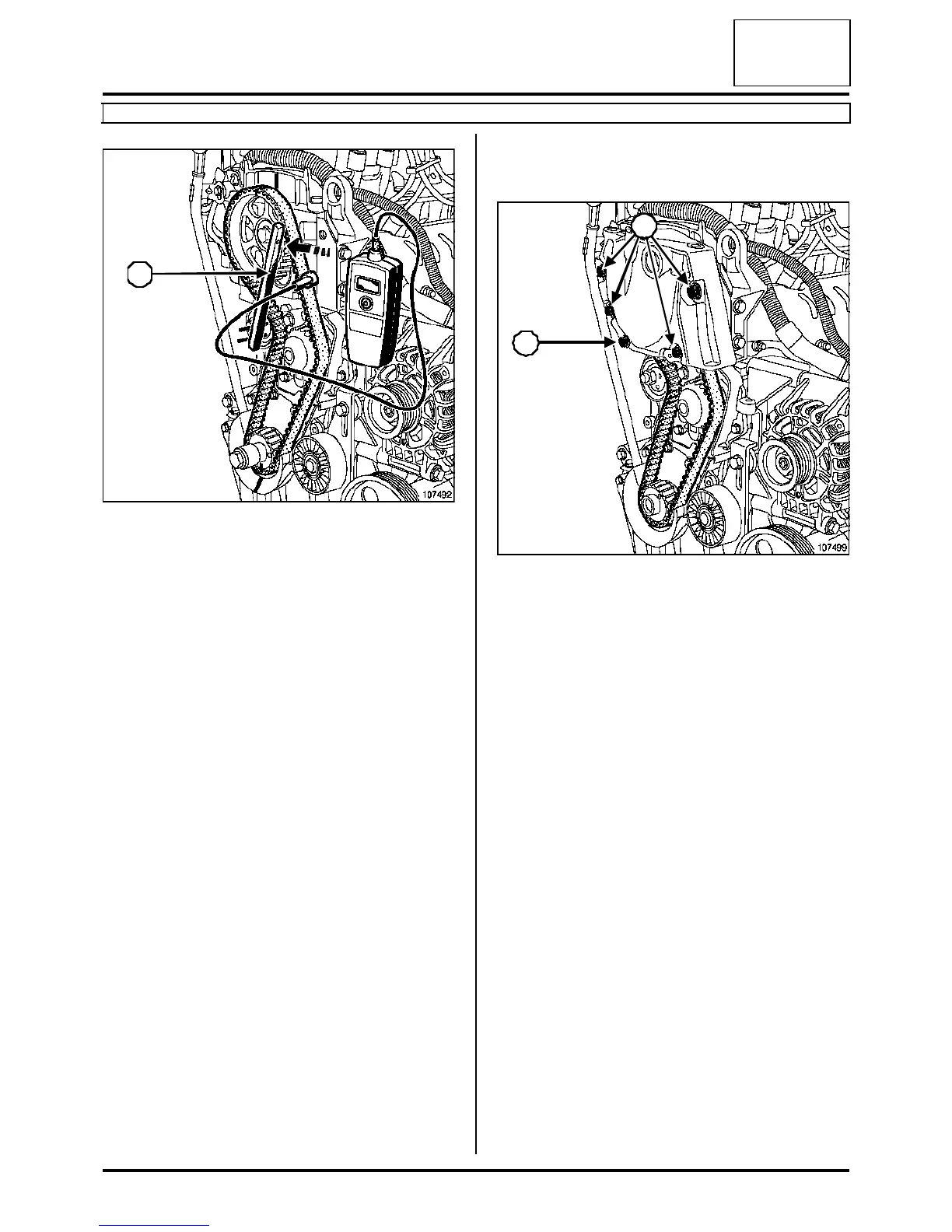 Adjust the belt tension with tool (Mot. 1505) or (Mot.