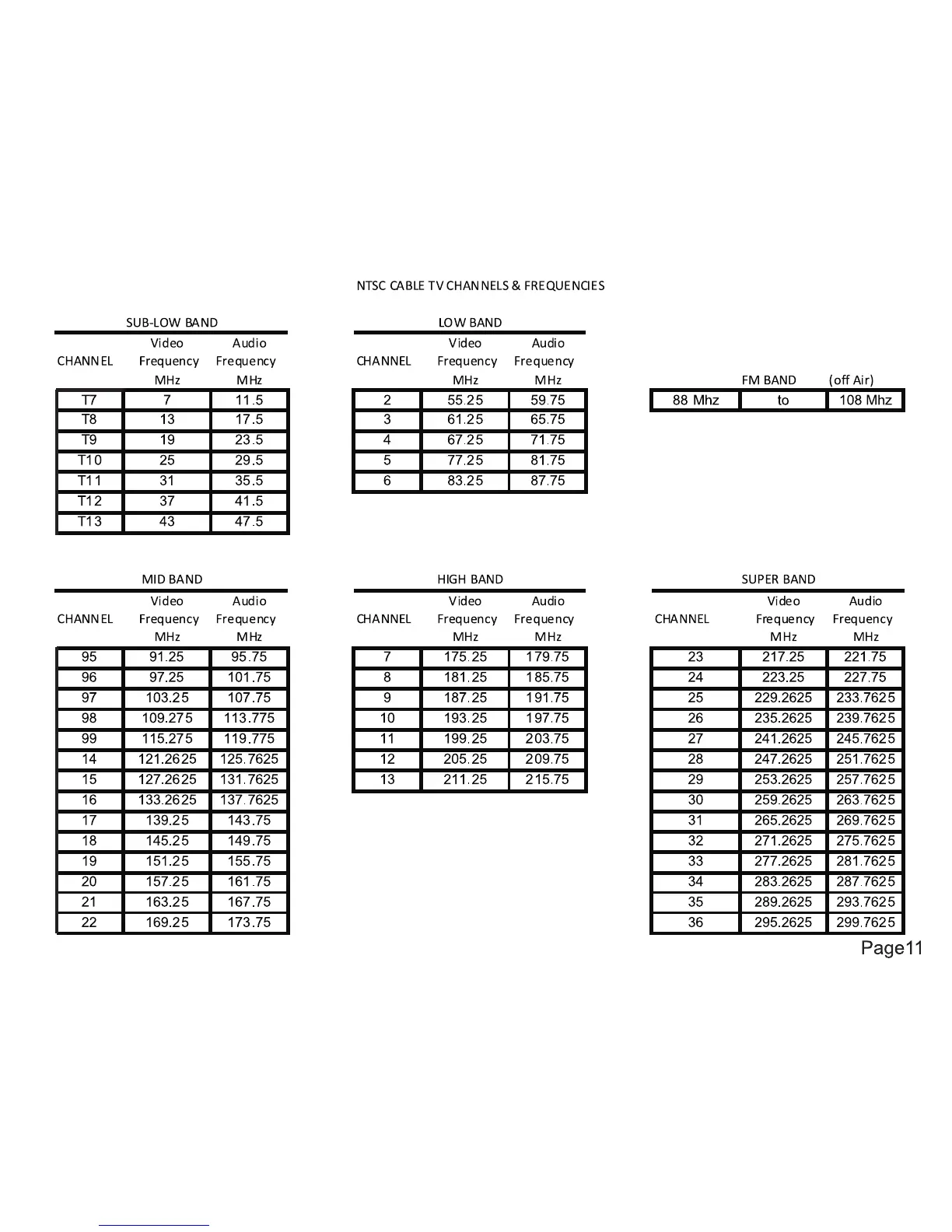 Logenex SLM-1A - NTSC Cable TV Channels and Frequencies