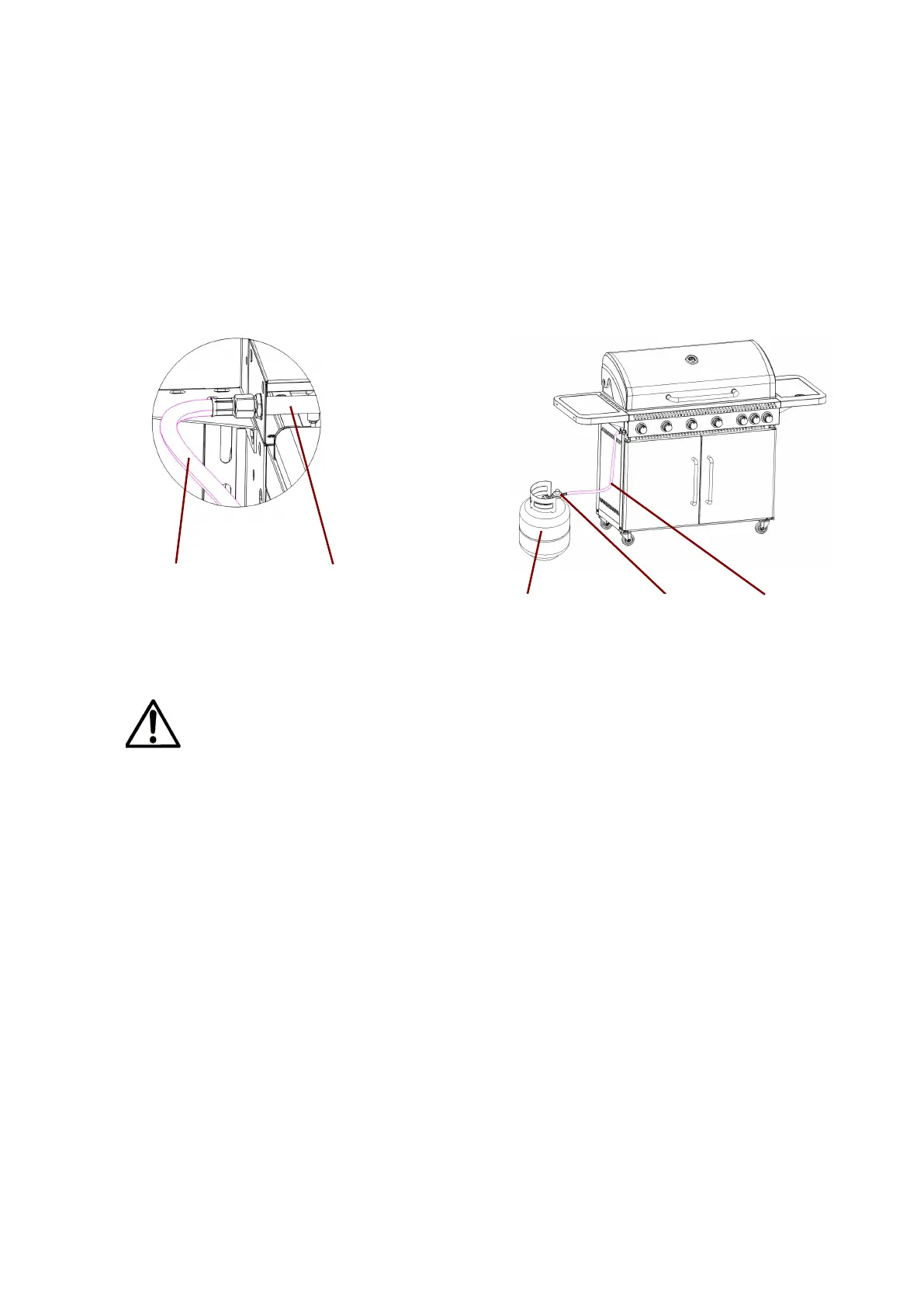 Varning: Testa alltid gasslangen för läckor vid anslutningen med tvålvatten