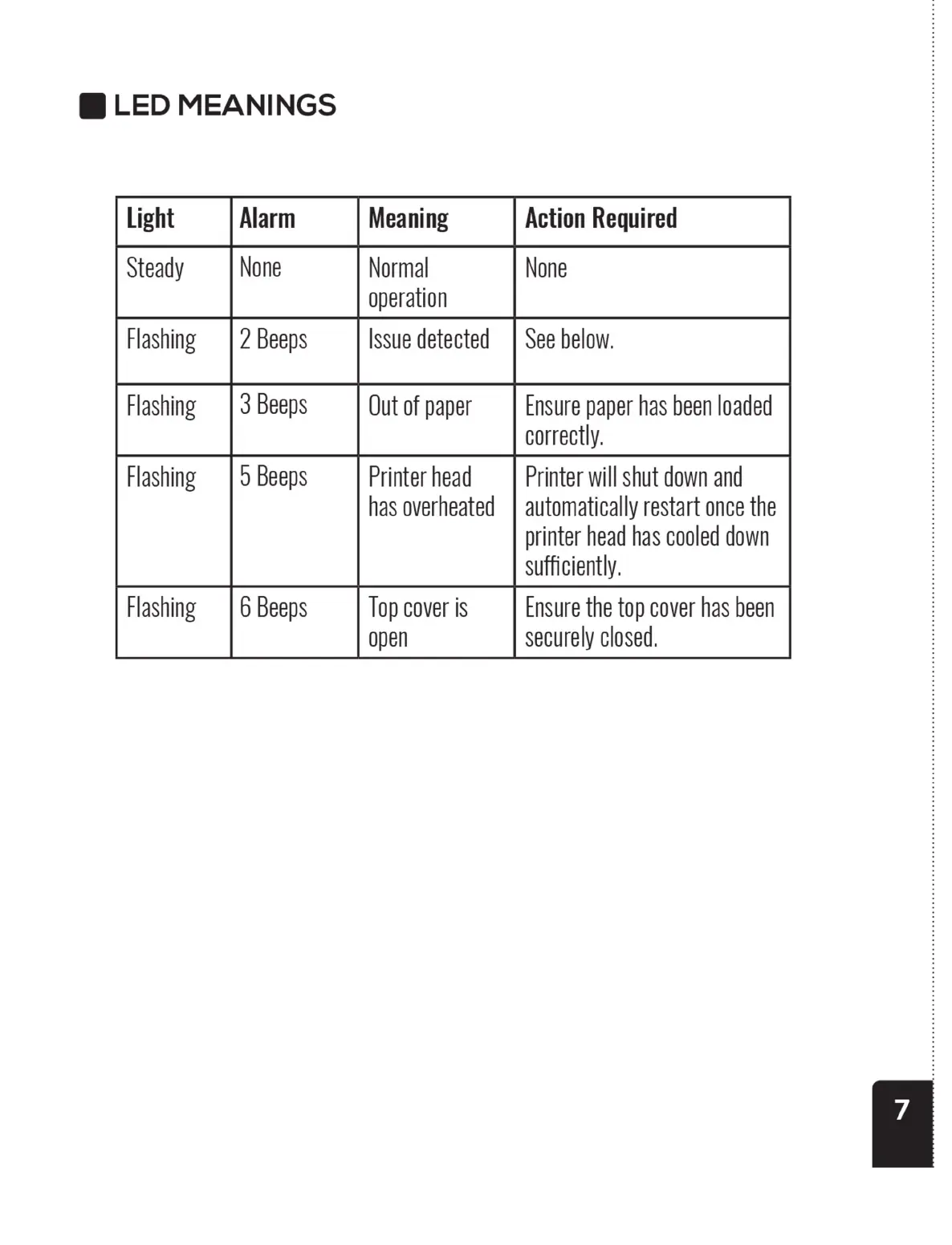 Logia LOGLP300 - Logia Printer LED Indicator Meanings; Interpreting Printer Status Lights