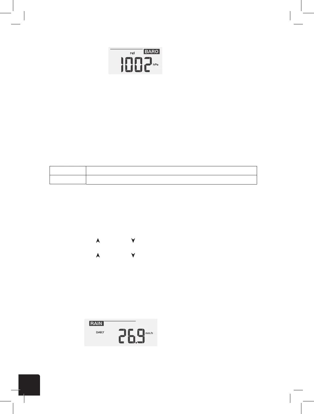 The Rainfall section is located in the same area as the Barometric Pressure section of the LCD