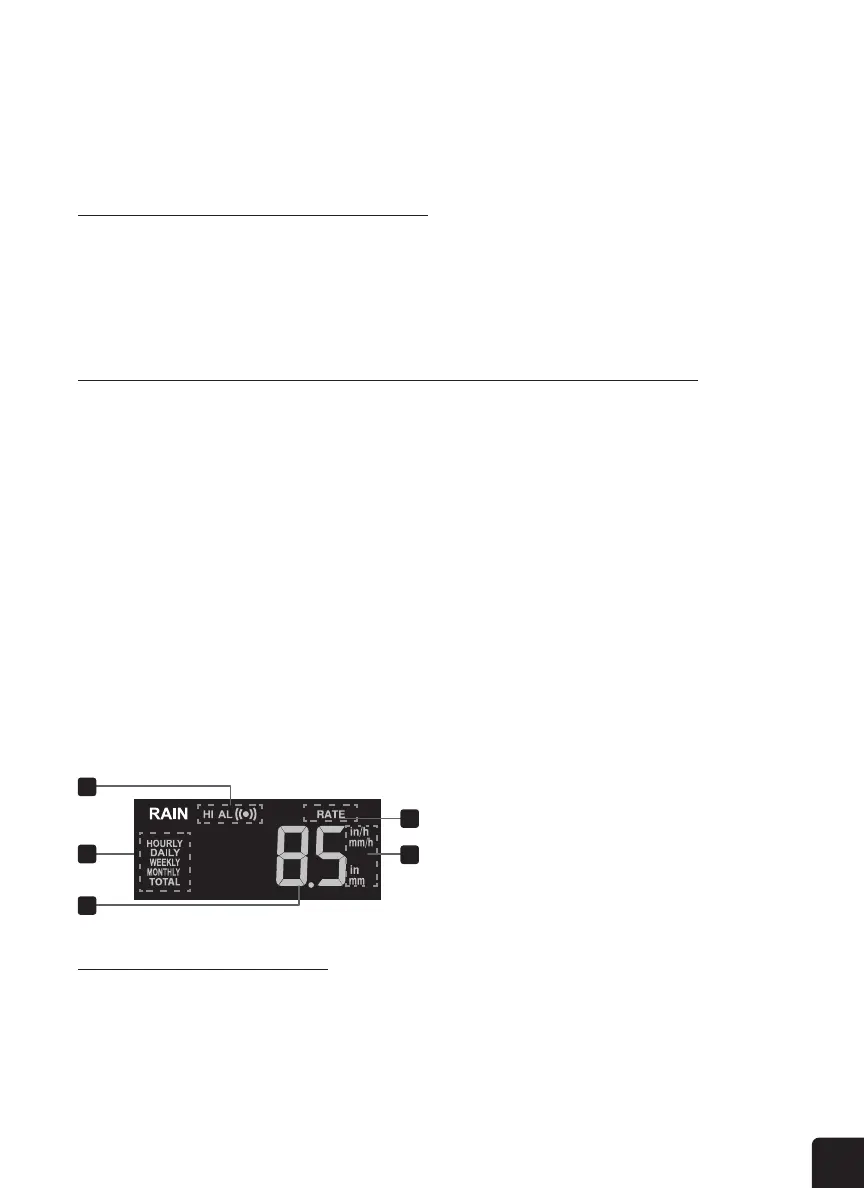 The device displays how many mm or in of rain are accumulated in an hour, based on current rainfall rate.