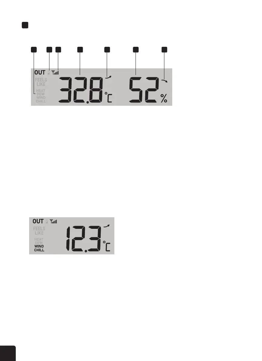 3. Outdoor sensor signal indicator to show the signal receiving strength