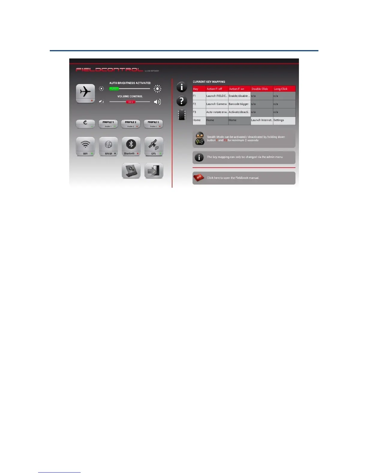 FieldControl E1 Main Page Landscape Mode