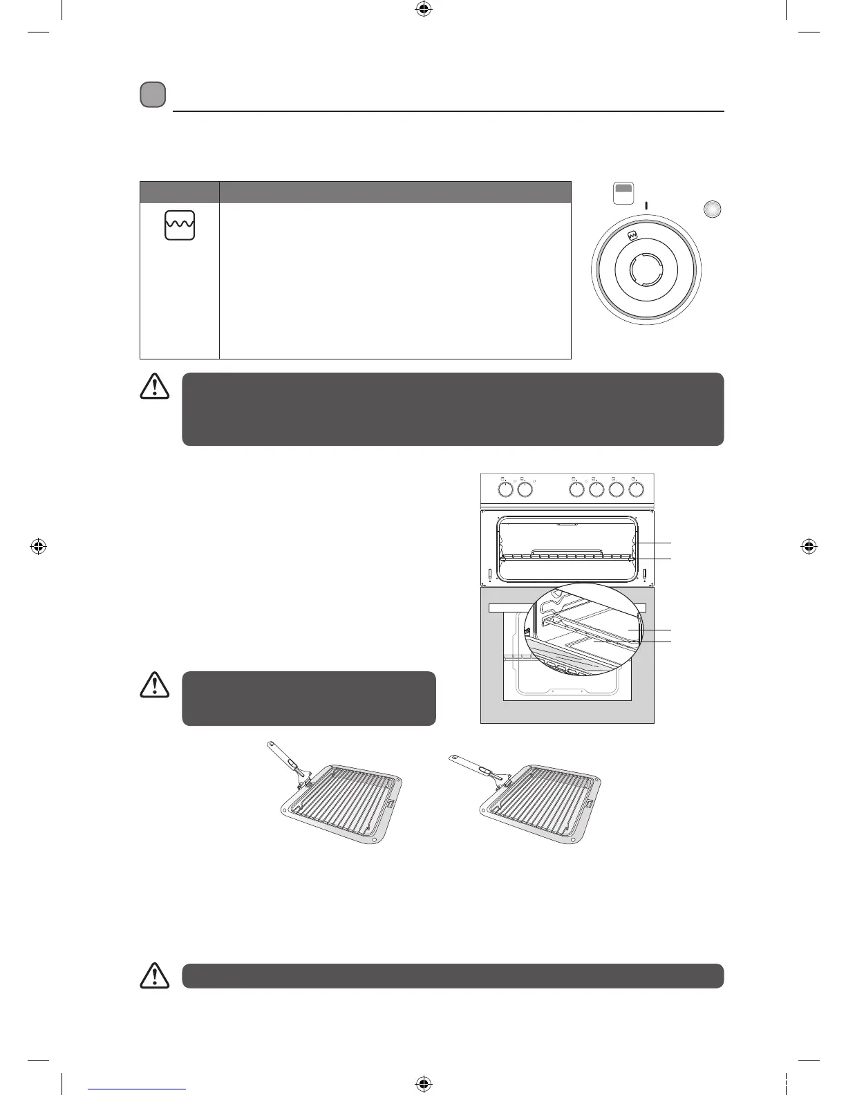 • The Grill door must be kept open during this function. The door has a position in which the door is