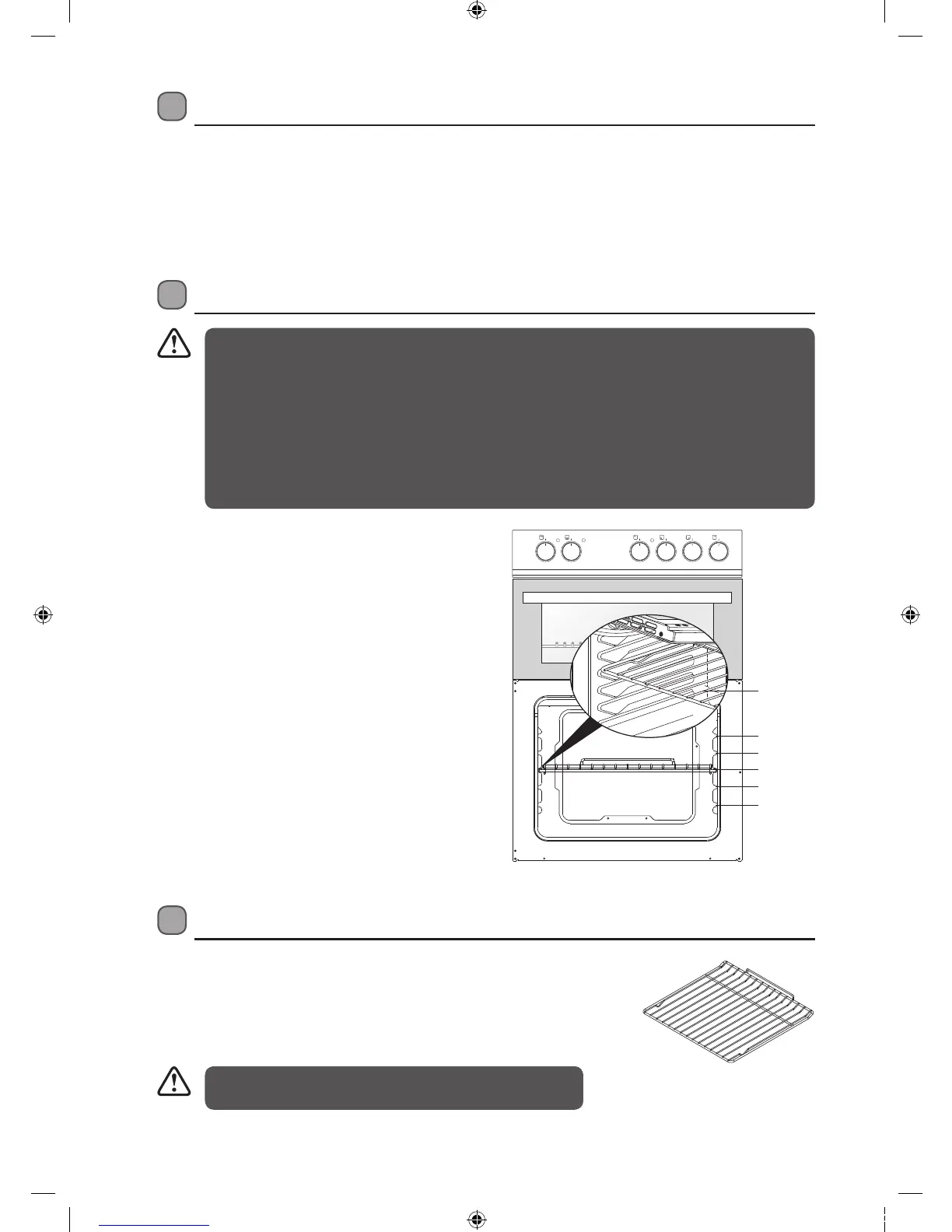 • Do not place dishes or baking trays directly onto the base of the oven as it becomes very hot and