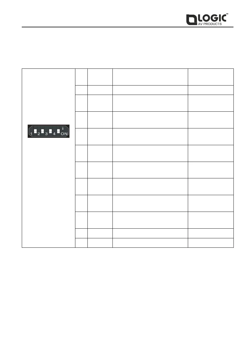 The rear panel boasts a 4-pin DIP switch to set the predefined EDID. The ten types of