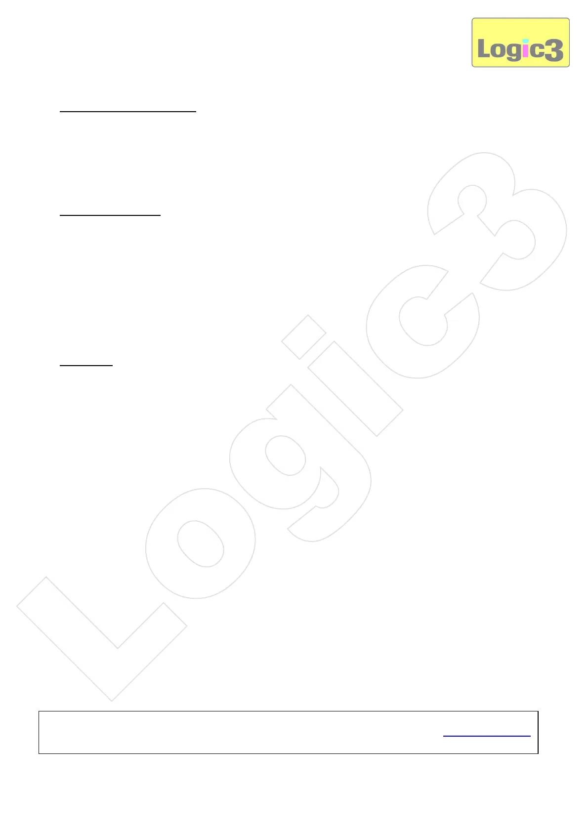 Support Hotline on +44 (01923) 471 000 National/International call rates apply or Email support@logic3.com