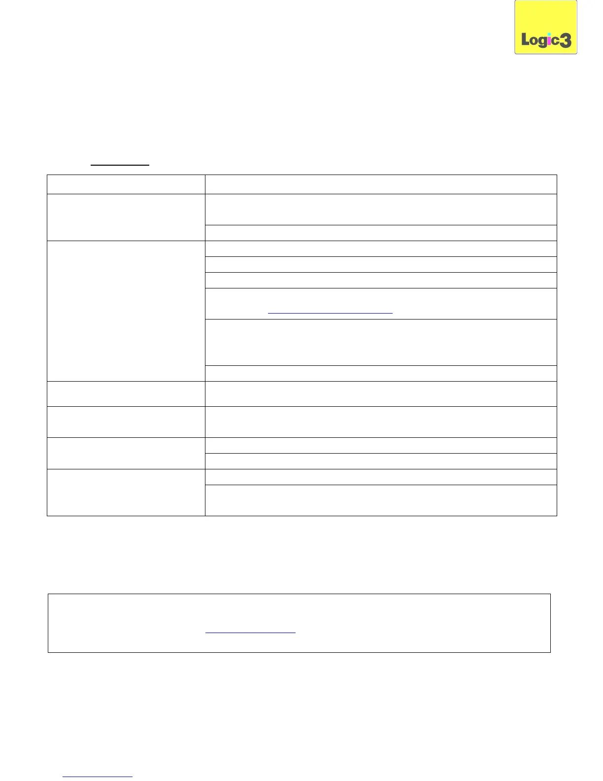 vigueur ou envoyez un e-mail à support@logic3.com. Des pièces de rechange sont disponibles pour certains