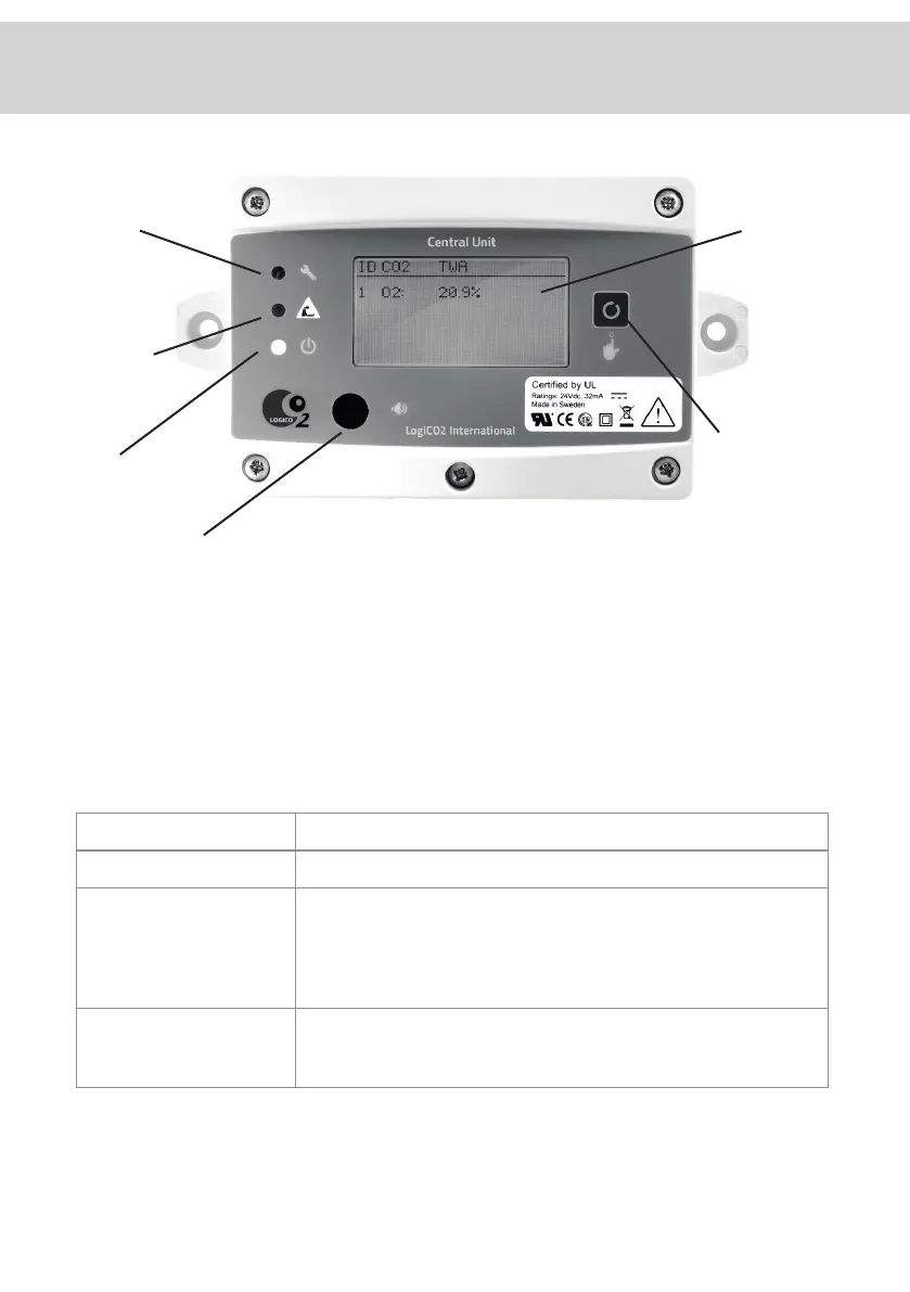 The Central Unit has a display that is used to monitor and control a O2 Safety System with up to