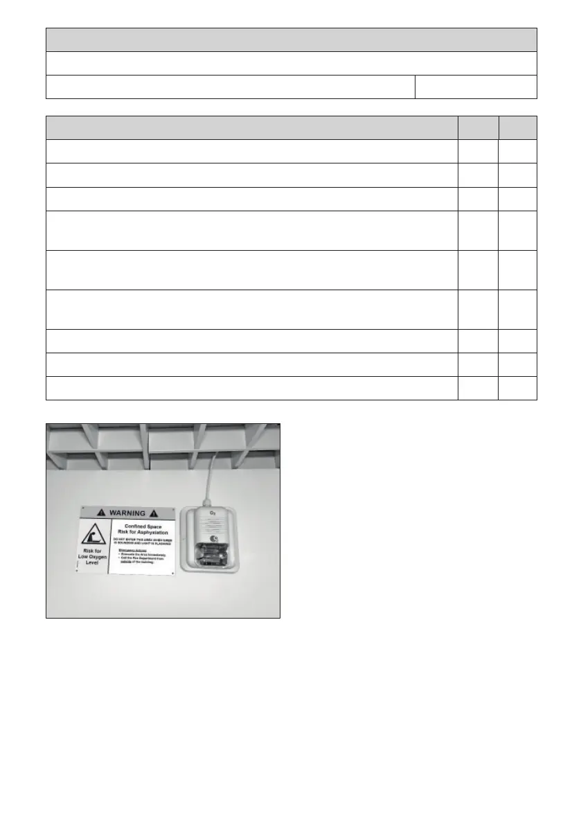 Is there a O2 warning sign mounted next to the horn/strobe?