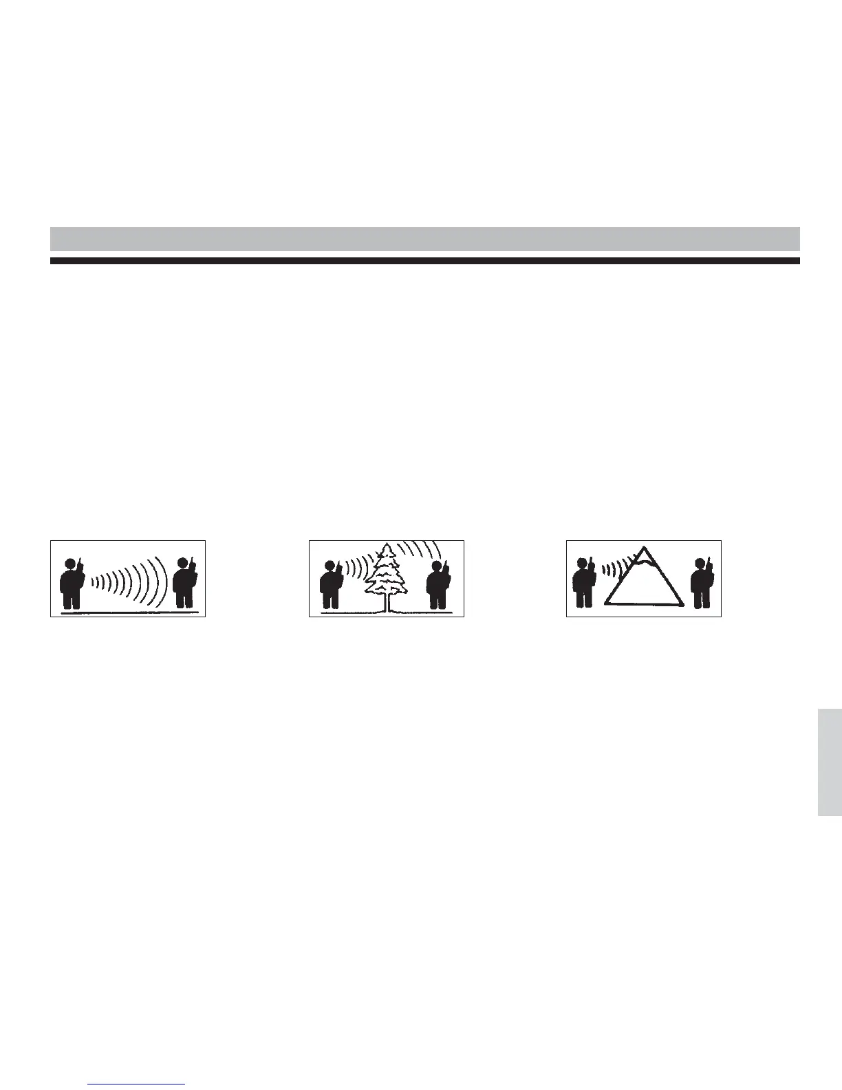 e árvores bloqueiam a transmissão. O alcance é mínimo quando folhagens e montanhas bloqueiam o caminho da comuni-