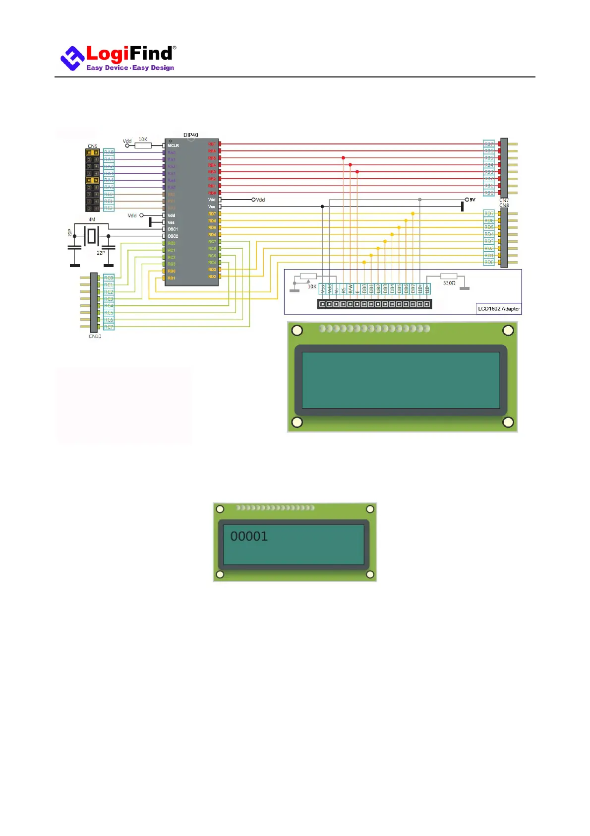 LogiFind PIC-EK - Lab 21 LCD1602 Incrementing Number; Lab 21 Hardware Connection Diagram; Lab 21 Objectives; Lab 21 Experimental Principle and Results