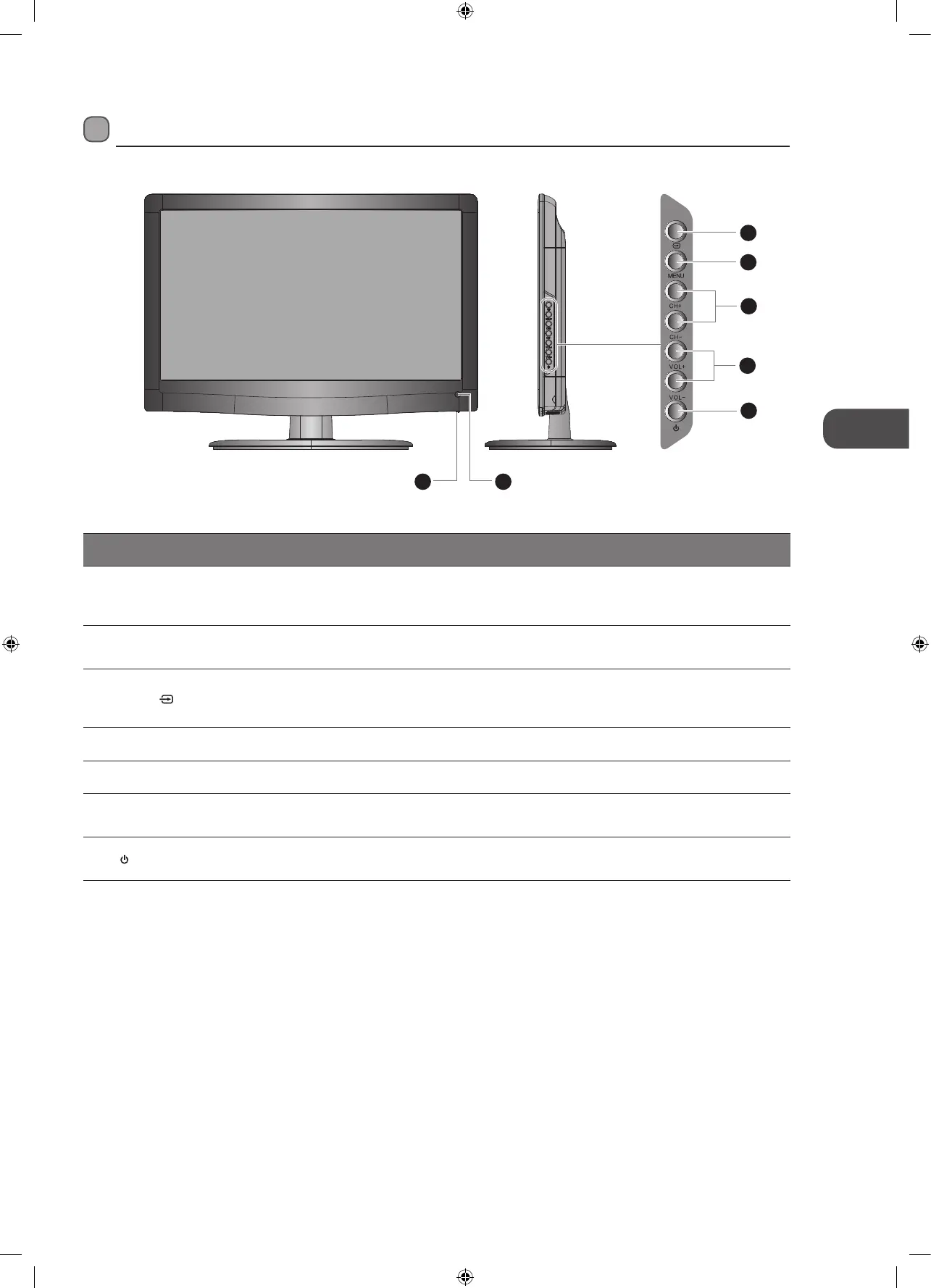 5 CH + / – Press to select a channel or select a sub-menu from the OSD menu.