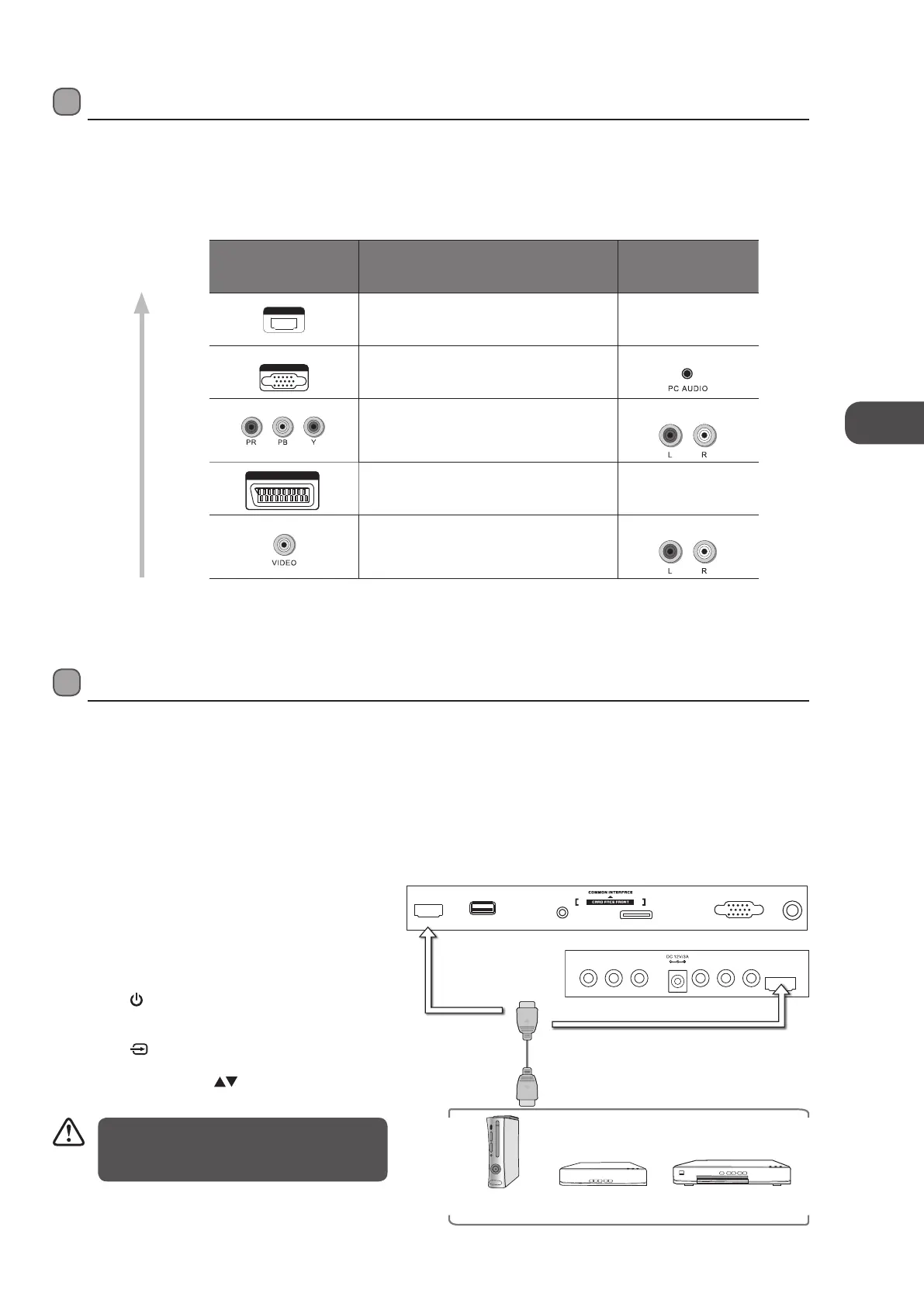 When you connect to the output of an HD ready player (blu-ray disc player, game console, set-top box or computer) switch to