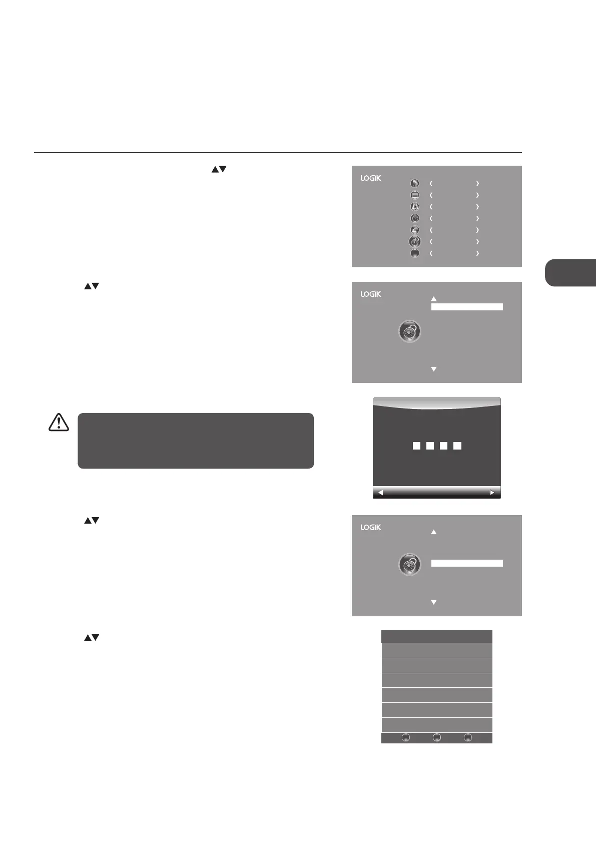 This function allows you to set up blocking schemes to block specific channels and ratings. It operates according to information