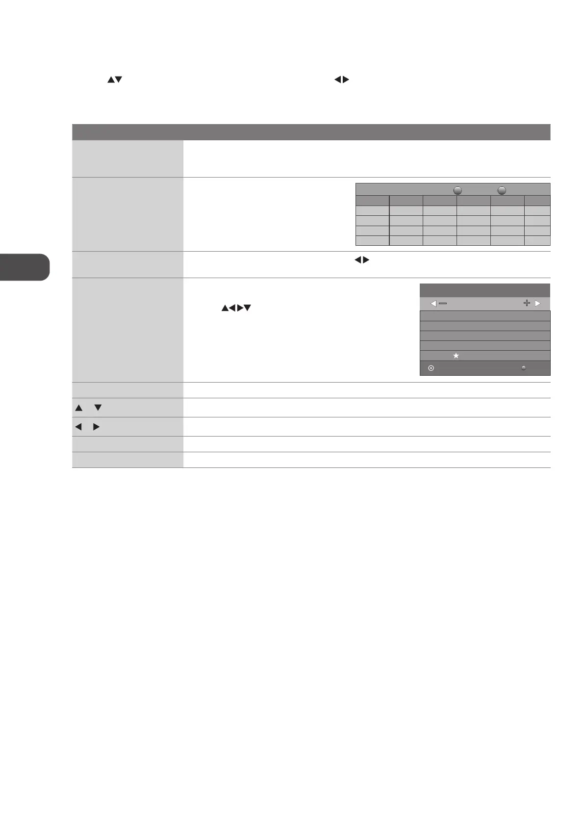 Press the buttons to select the desired channel and then press the buttons to select the desired programme. Press the
