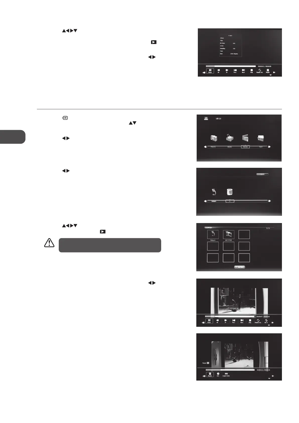 then press the OK button to select the function: Pause / FB / FF / Prev /
