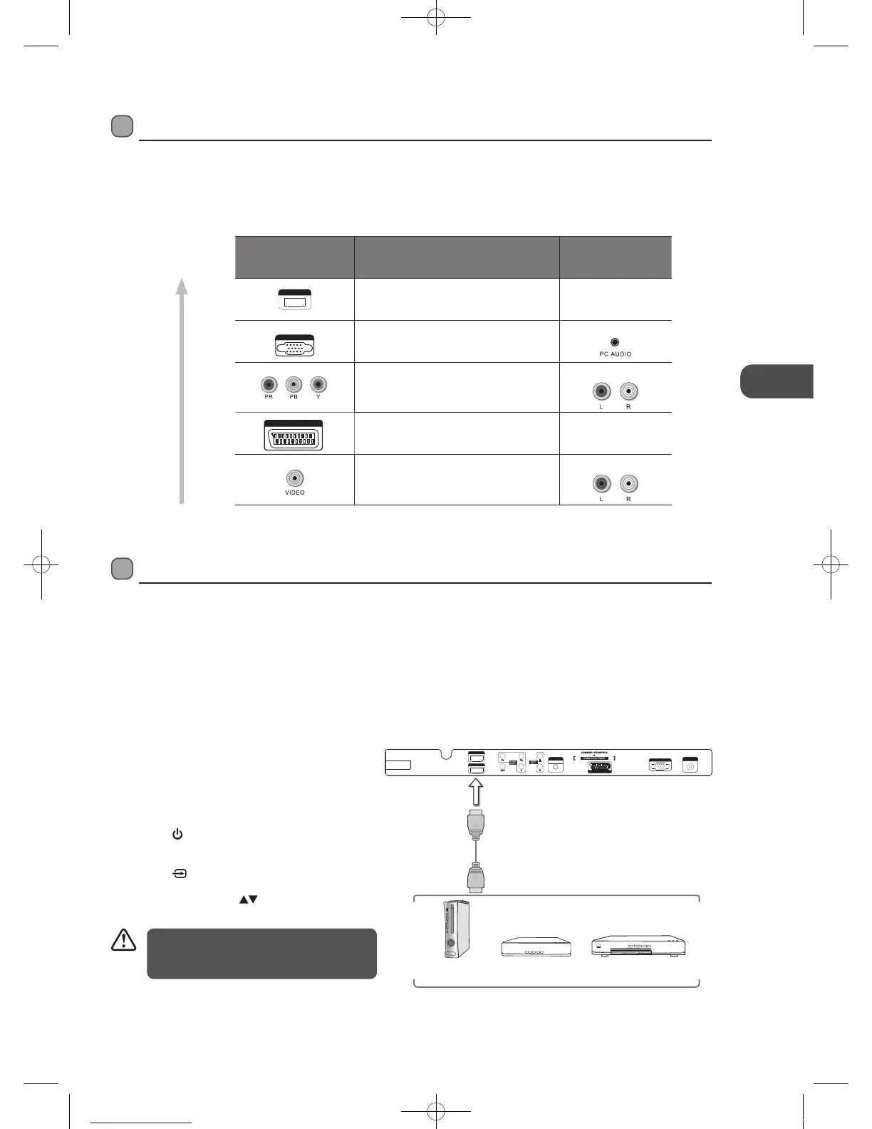 • When you connect to the output of an HD ready player (blu-ray disc player, game console, set-top box or computer) switch to