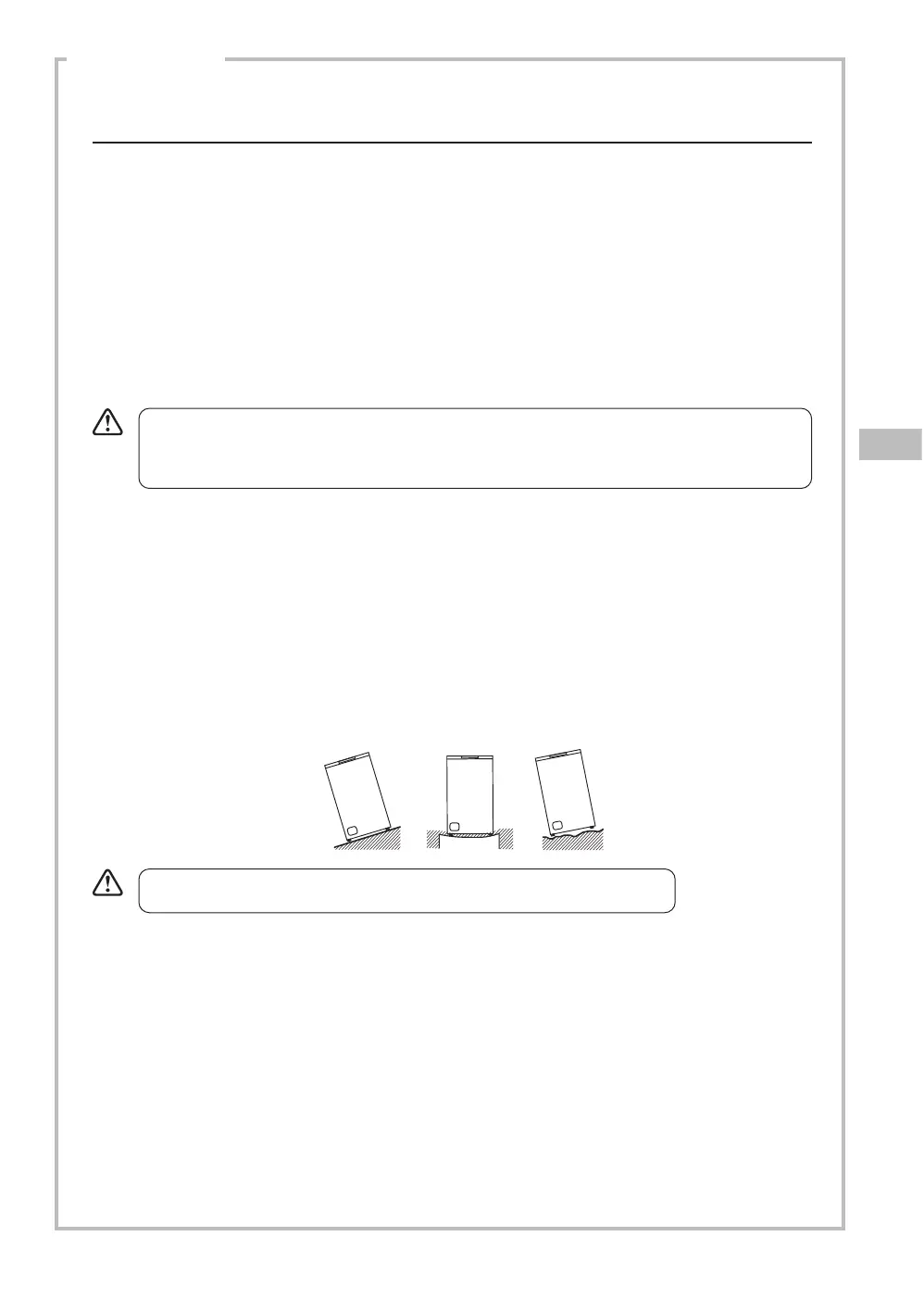 • Install your washing machine on a at, stable surface to avoid excessive vibrations and