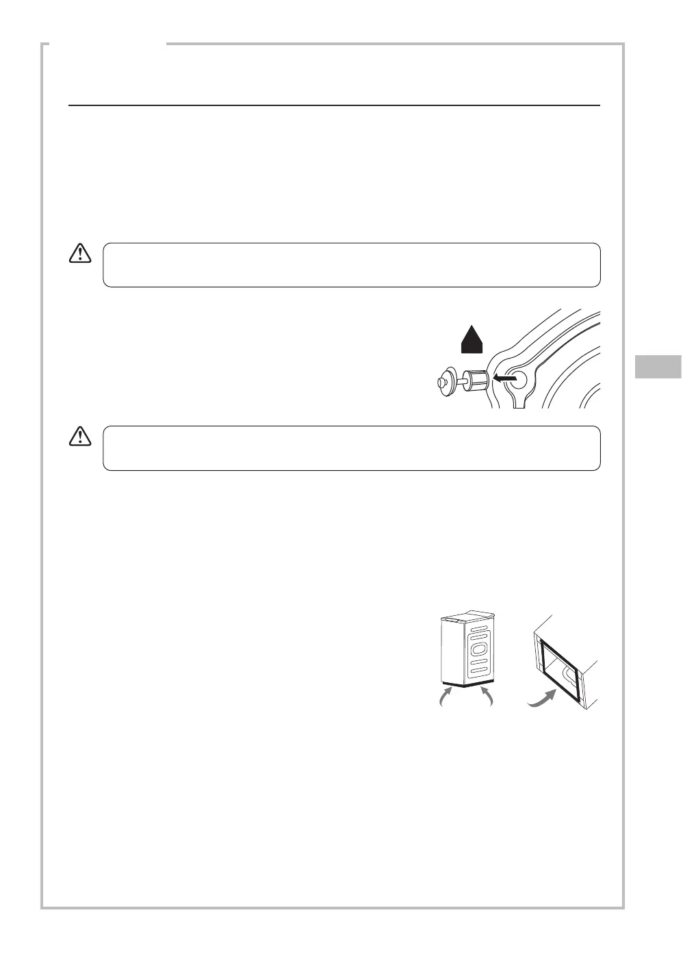 Apparatet skal justeres med transportboltene på plass, og det skal ikke vippes etter at de er