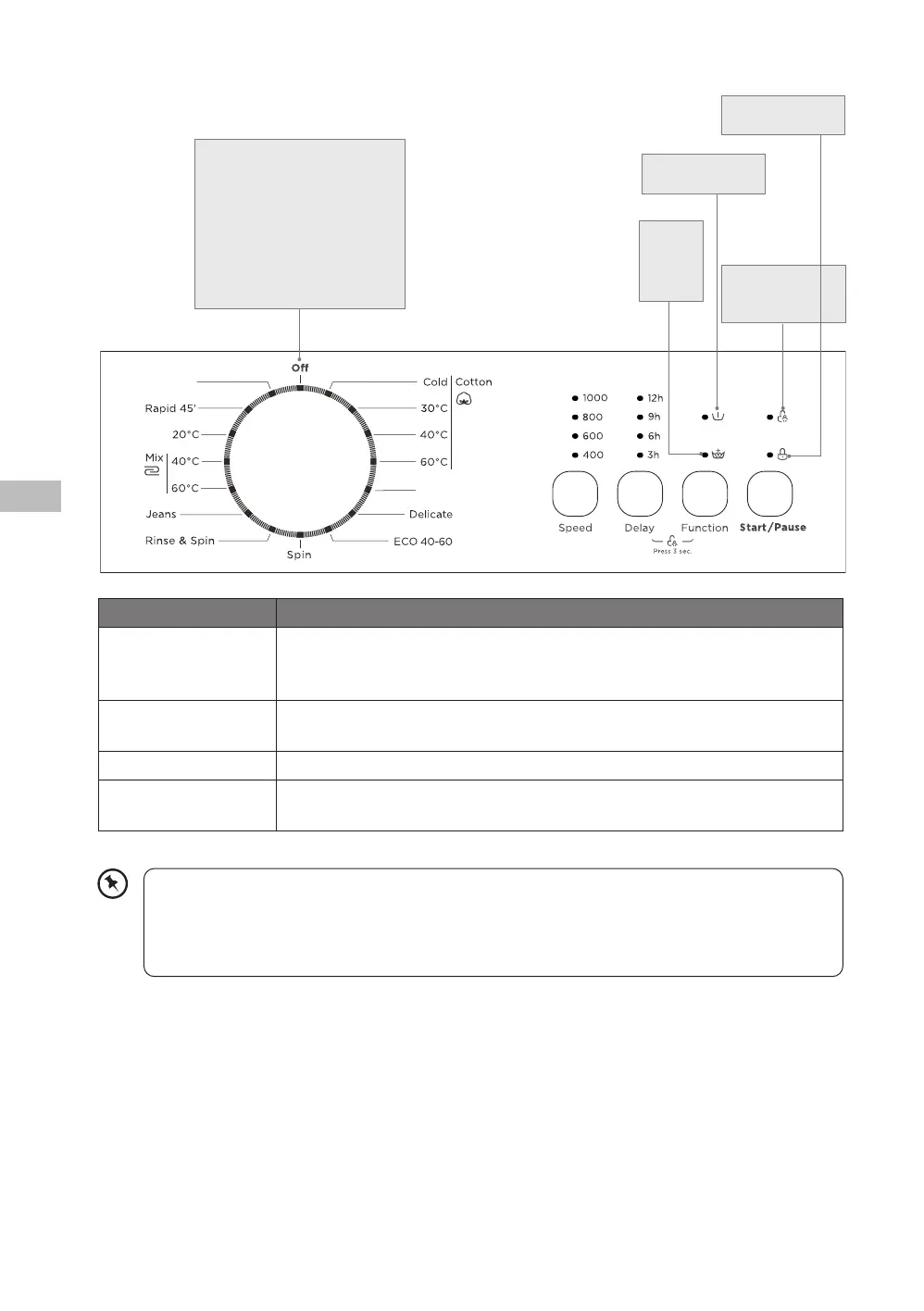 Start/Pause Trykk for å starte/fortsette vasken. Trykk på denne for å stanse vaskingen