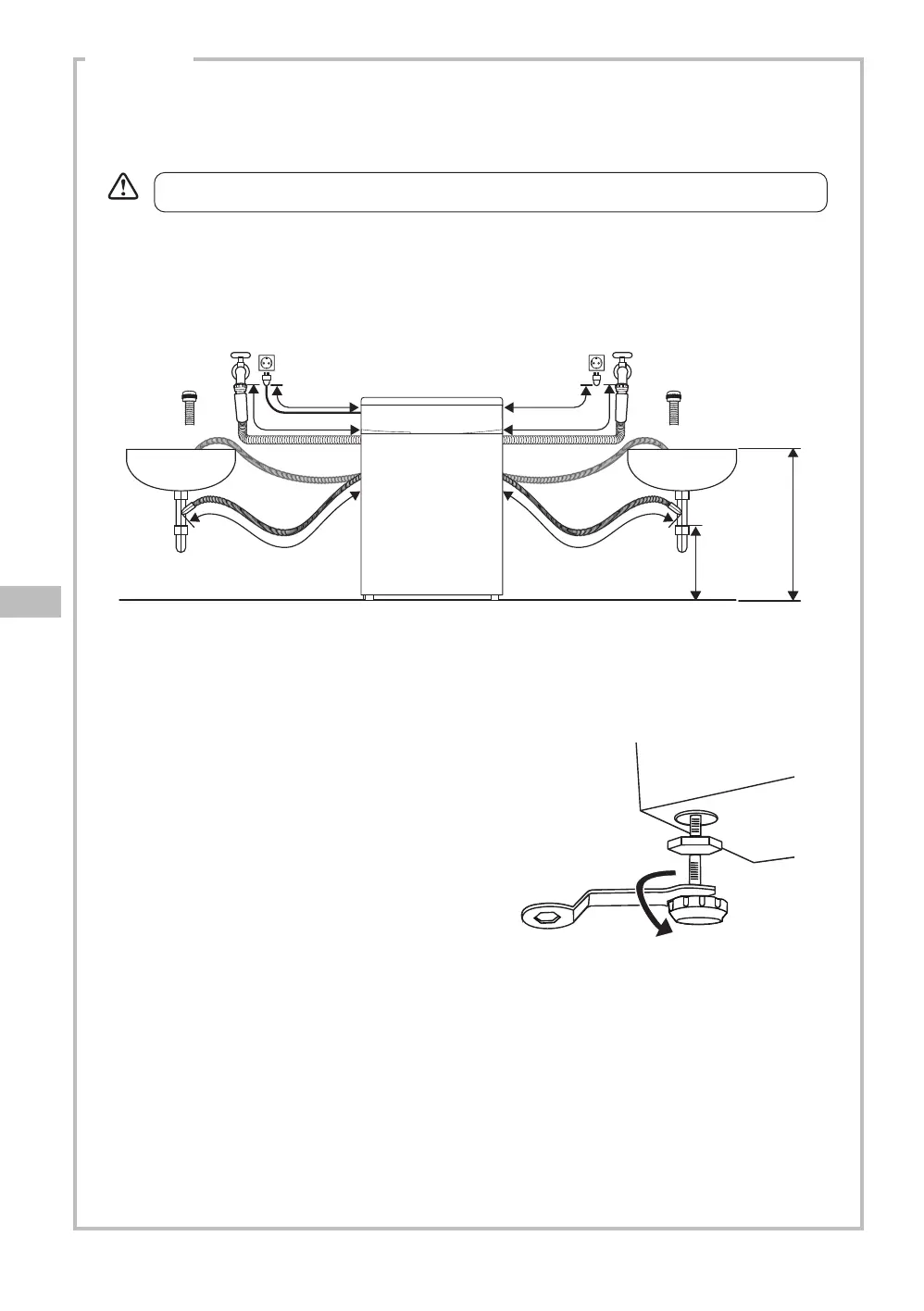 Koneen pohjassa on säädettävää jalkaa. Jalkoja säätämällä pesukone saadaan vaakasuoraan.