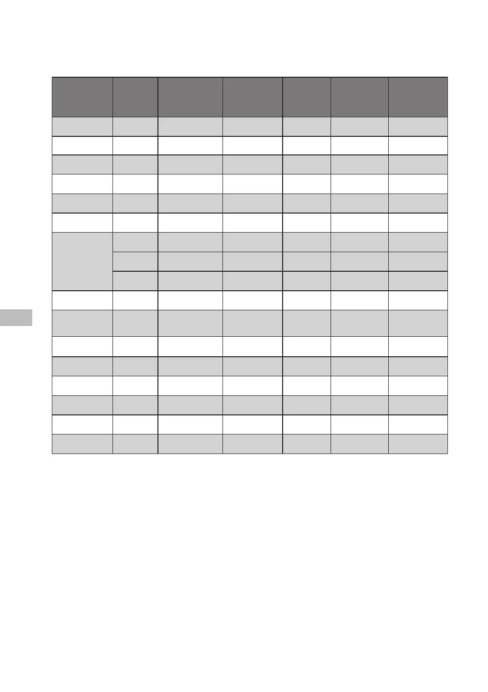 Huomautus: Tämän taulukon parametrit ovat vain viitteellisiä käyttäjälle. Aika saattaa vaihdella