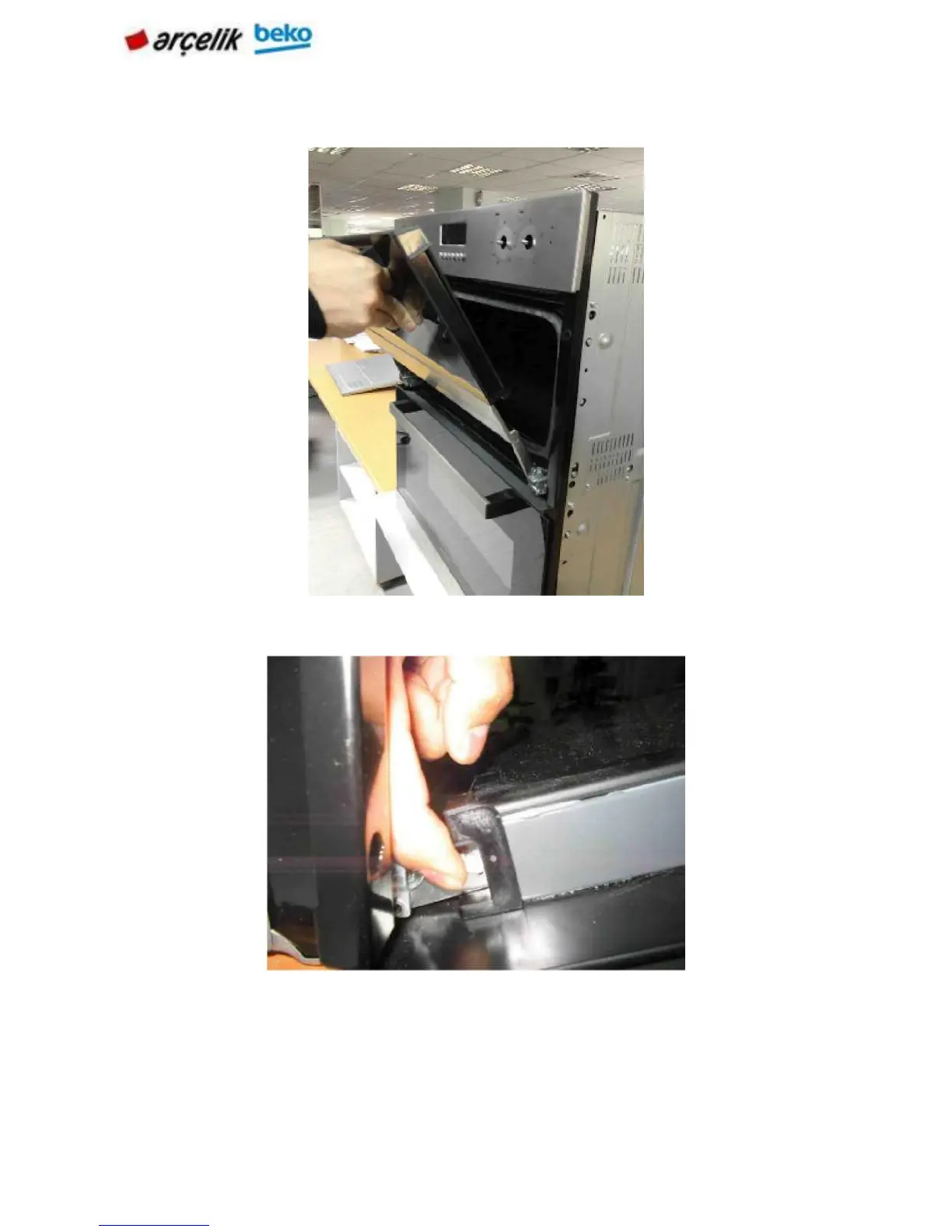 As shown in the picture,pull down the hinge clips on both sides ot the oven door.