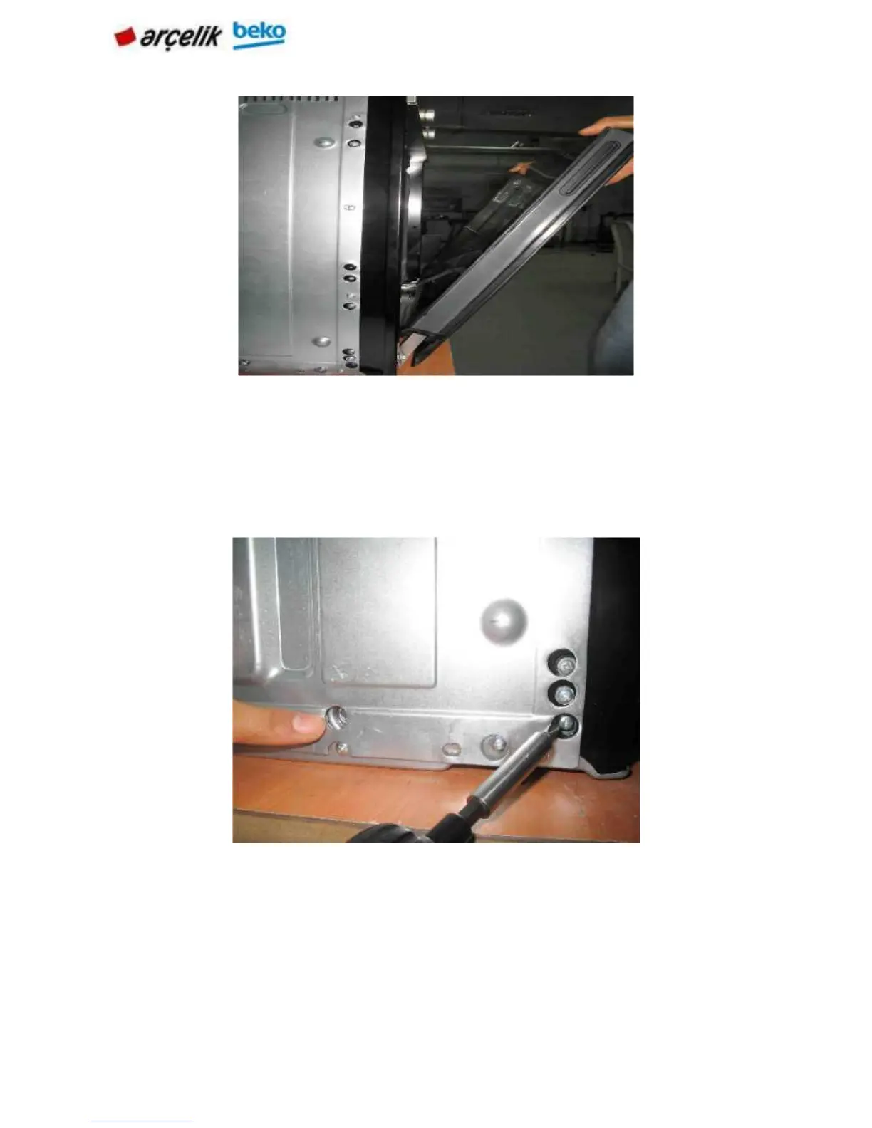 .Position the door halt open as shown. Remove the oven door by pulling it away trom the oven