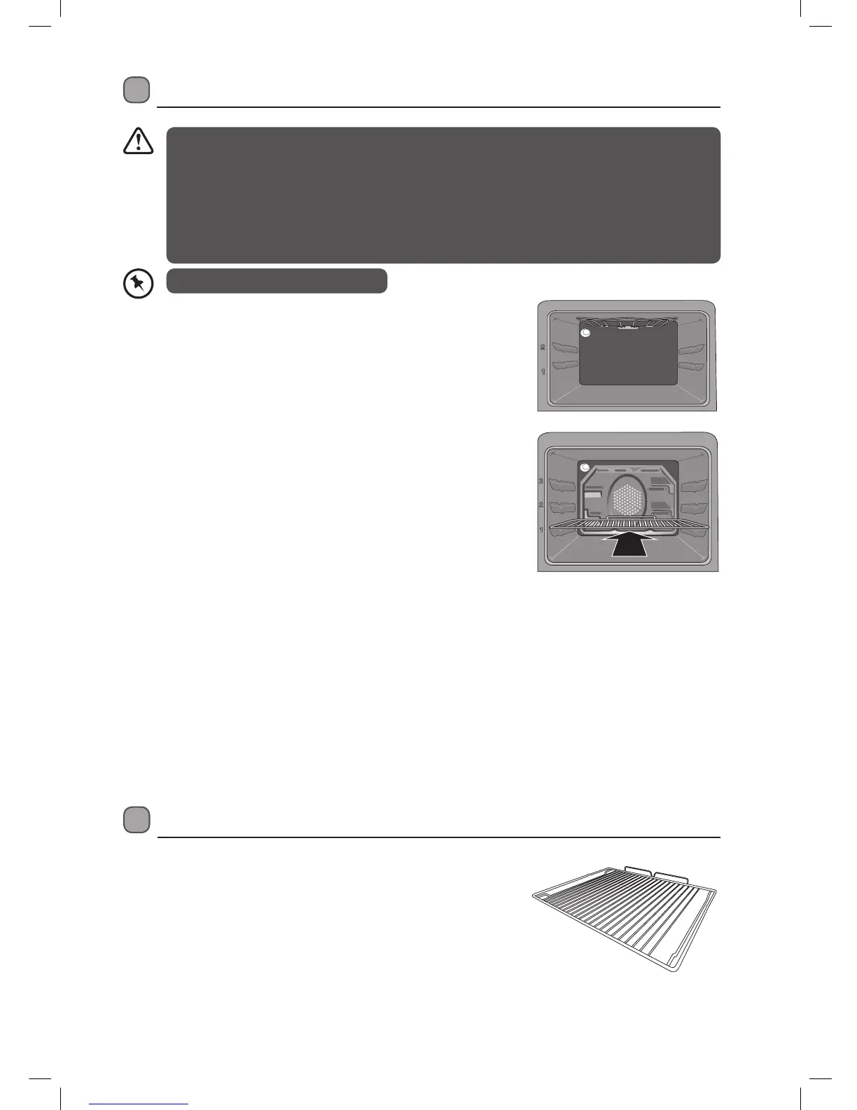 • Do not place dishes or baking trays directly onto the base of the oven as it becomes very hot and