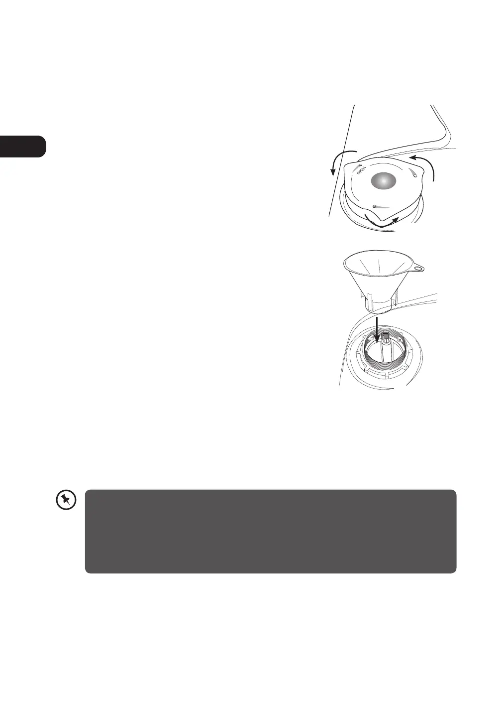 1. Poista alakori ja kierrä säiliön tulppa auki.