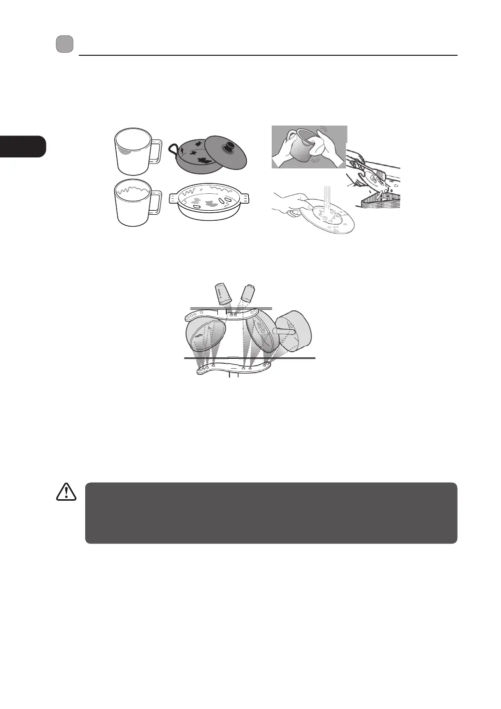 • Aseta ruokailuvälineet ja talousastiat niin, että vesi pääsee niihin kaikilta puolilta.