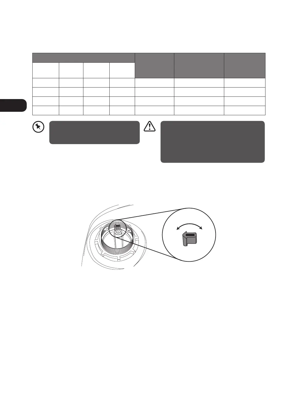 2. Der er en pileformet indikator i beholderen, som kan drejes. Du kan dreje den til “-” eller “+” afhængigt