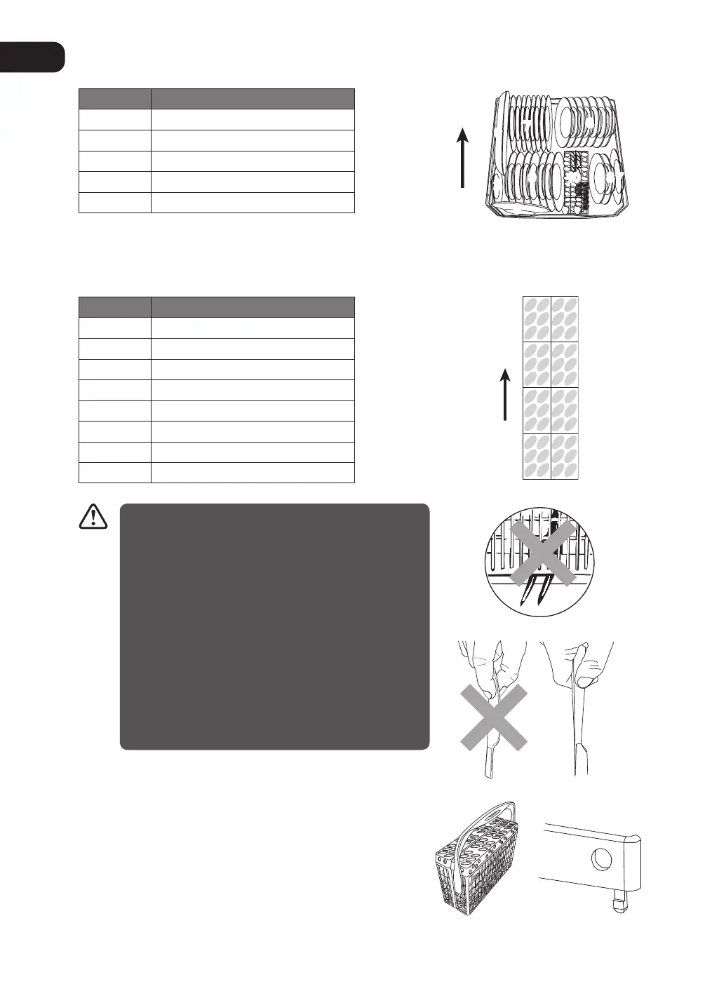 For optimum placement of crockery in the lower basket, please refer to the following list and image.