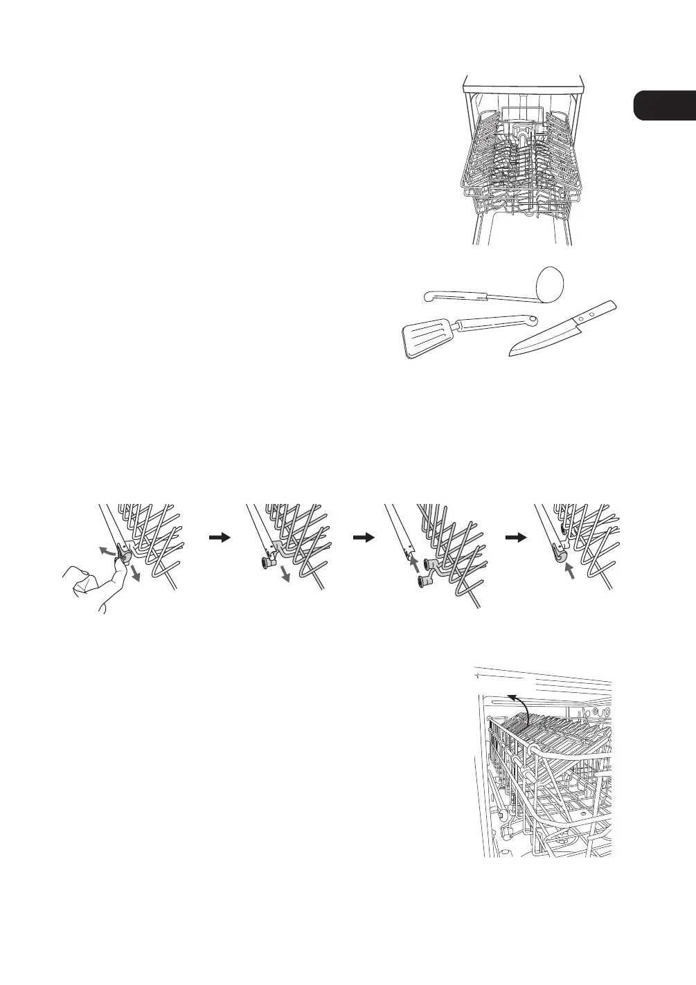 Du kan lage mer plass for større gjenstander i de øvre og nedre kurvene ved å justere høyden på den øvre