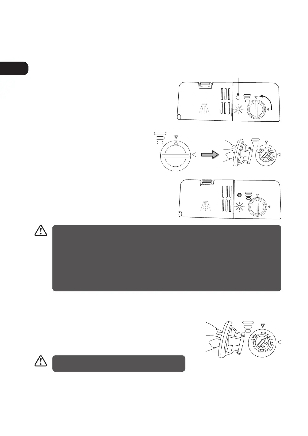 • Sköljmedlets varningslampa kommer att lysa när behållaren börjar bli tom och behöver fyllas