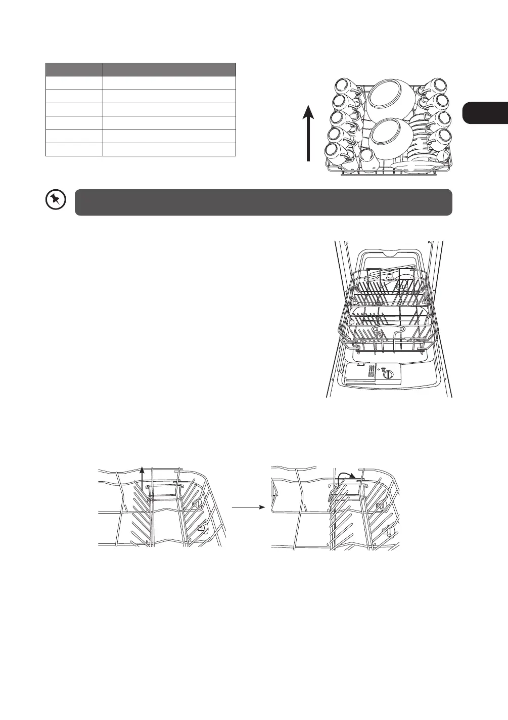 att göra rent placeras i den nedre korgen såsom tallrikar,