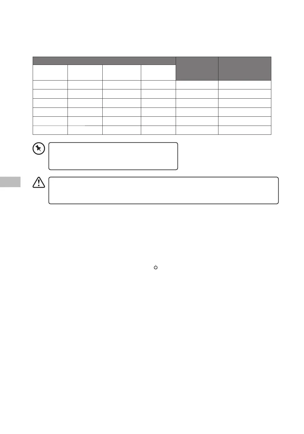Det rekommenderas att inställningarna bör göras i enlighet med följande tabell.