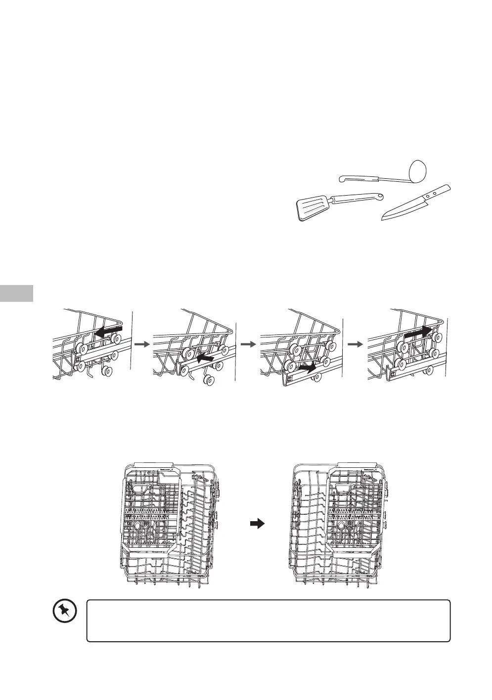 Bestickhyllan kan bara användas på den övre korgen och bara när den övre korgen