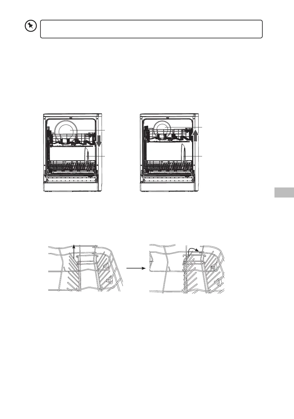 Jos on tarpeen, yläkoria voi säätä lisätilan luomiseksi suurille lautasille ylä- tai alakorissa.