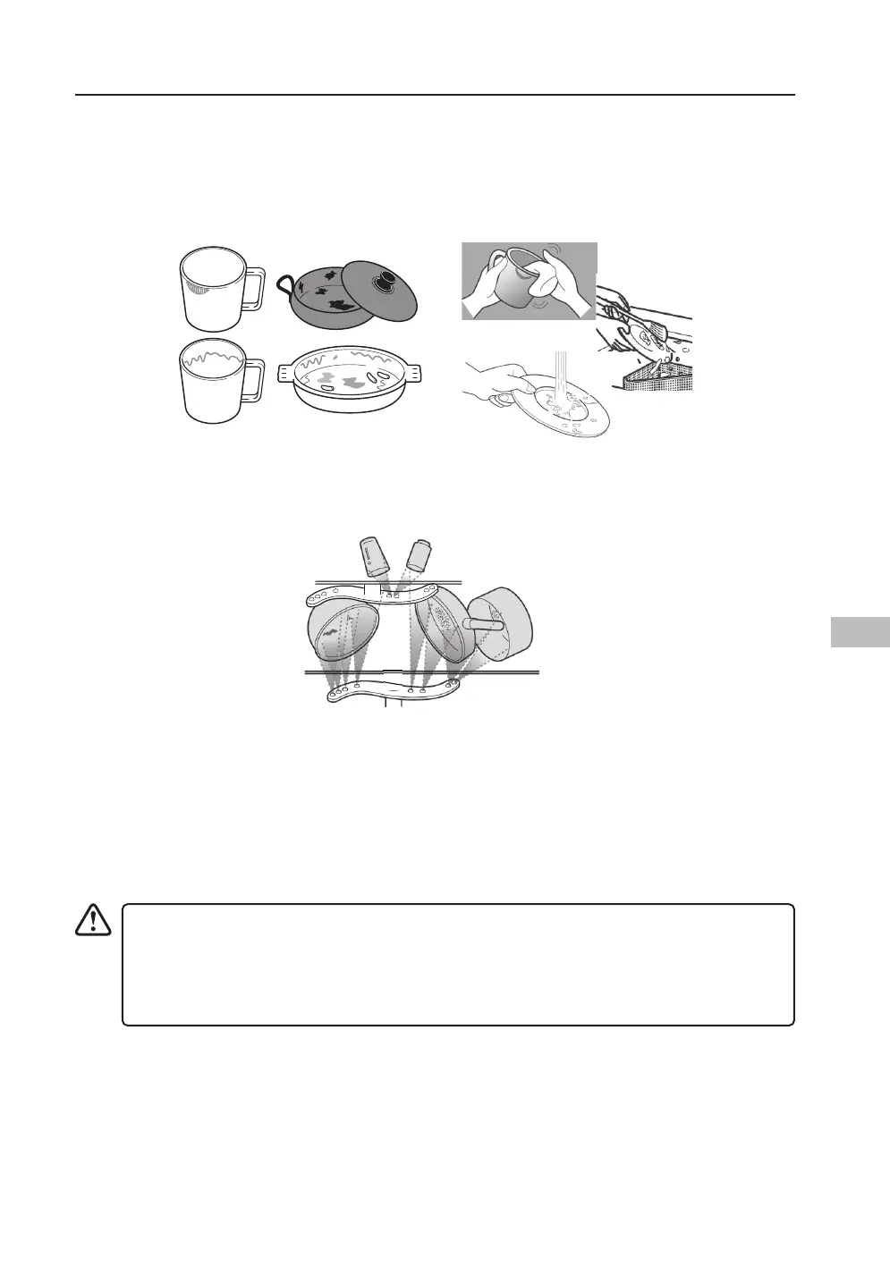 • Vask ikke genstande, der er snavset med aske, sand, voks, smørefedt eller maling i