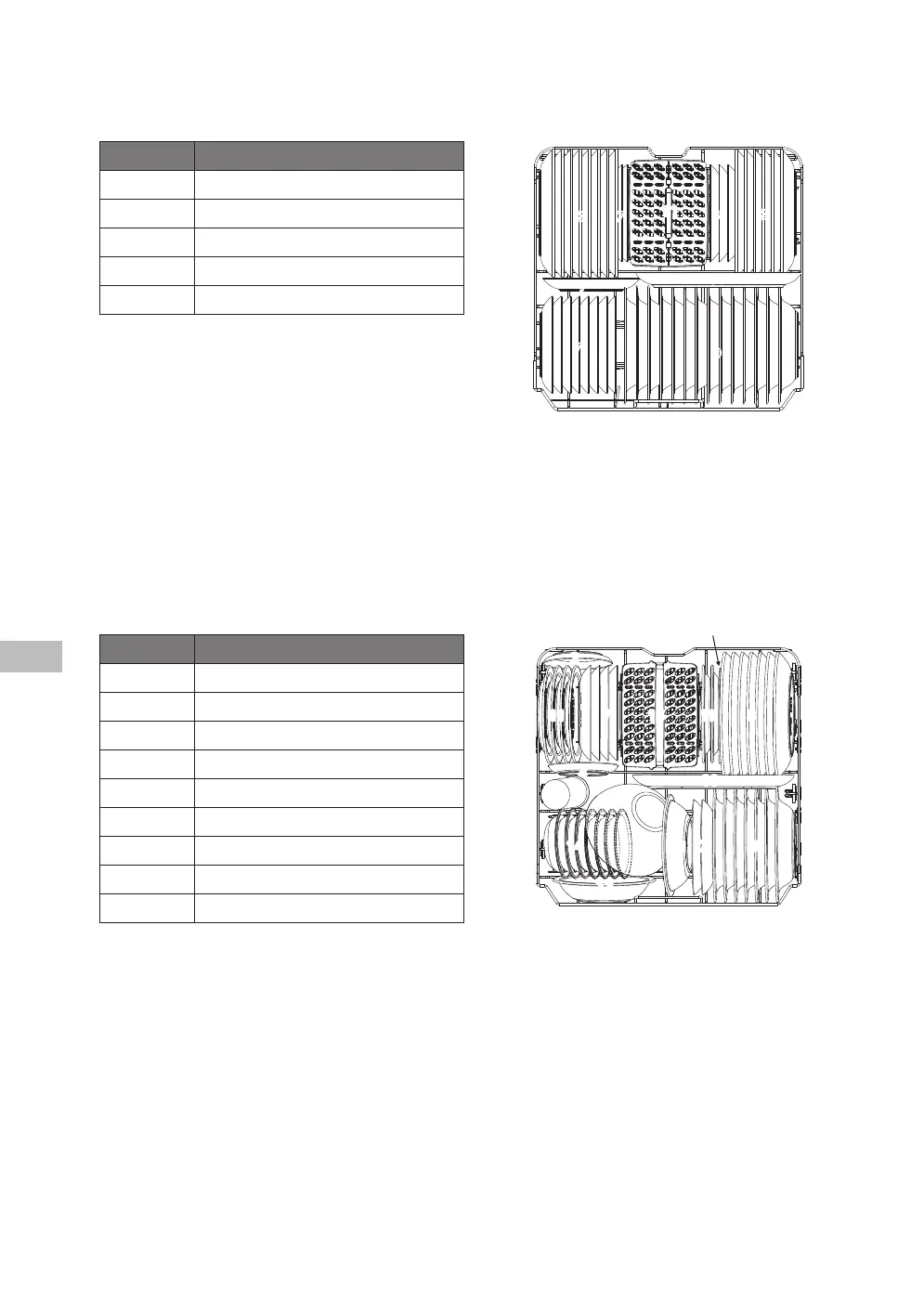 For optimal placering af køkkentøj i den nederste kurv, bedes du venligst se følgende liste samt